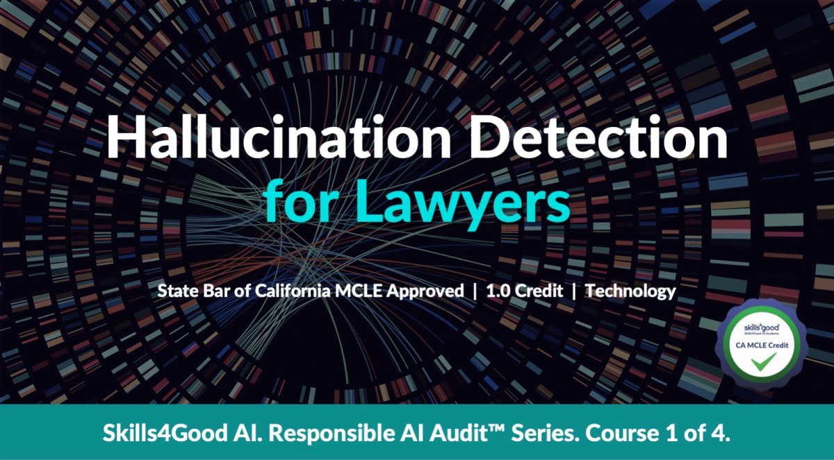 Skills4Good AI’s Hallucination Detection for Lawyers course has been approved by the State Bar of California for 1.0 MCLE credit (Technology). The 3-minute AI audit below is drawn from the same methodology.
